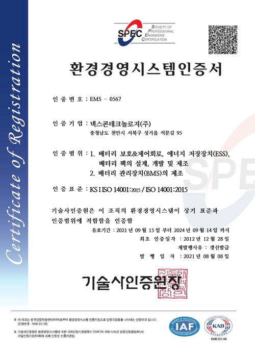 당사는 환경경영시스템 인증을 통해 환경법규 준수, 강화되는 법적 규제의 능동적 대응, 에너지 절약, 폐기물 감소,