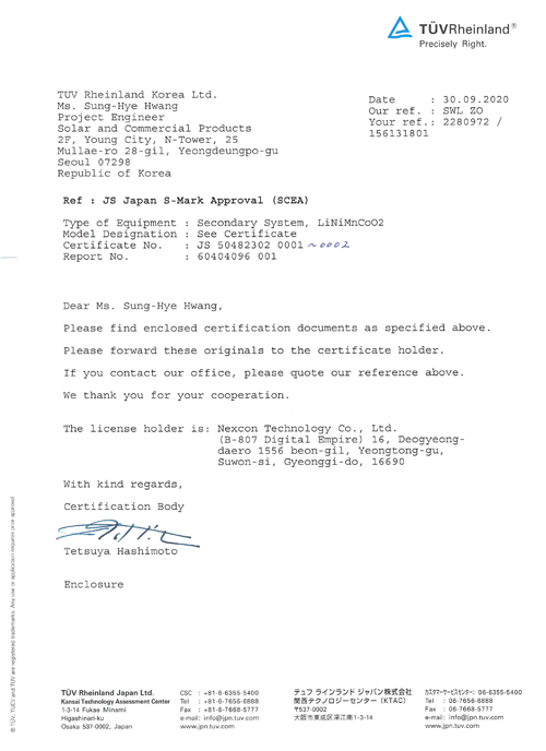 代表: Joon-Yeol YOONTEL : 041-620-4000FAX : 041-620-4284E-MAIL : sales@nexcontech.com